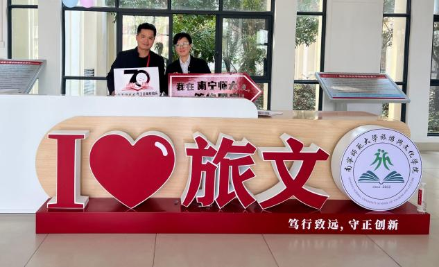 这一次回母校,感受到了在外拼搏的游子归家时的喜悦,见到当年的老师和校友,感觉特别亲切。您看,我跟甘书记的合照,我牵着她的手照的,当年她的统计学我学得特别认真,她的要求特别严格,所以她那门课程,期末考试分数都不会低。您看,我跟2011级学弟莫入兵的合照,仿佛就像两兄弟,他身上有很多与我相同的共同点,让我感觉相见恨晚,他在广西美术馆工作过,他现在在广旅集团做一键游广西,做集团二级公司的笔杆子,他还写得一手好字,曾经做过书法老师,与我志趣相投,加上他在广旅集团所做的工作,也同样与旅游业紧密相关,实在是相见恨晚!