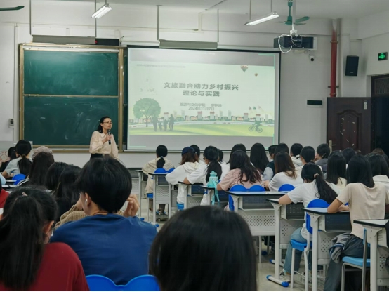 为落实立德树人根本任务,践行“德才并育,知行合一”的校训精神,由bw必威西汉姆联承办的南宁师范大学第五期通识教育系列讲座“文旅融合助力乡村振兴理论与实践“”于11月7日晚在美设楼201教室成功举行,讲座由廖钟迪副教授主讲,吸引了全校200多名学生参加。