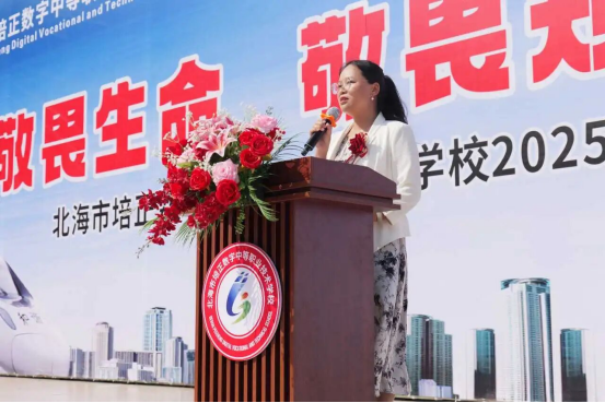 当日上午,学院受邀出席北海市培正数字中等职业技术学校乘务专业新生授章仪式,与多方校企代表共同见证新生开启职业征程,现场深化校校合作。仪式上,黄珍副书记代表学院致辞,围绕“畅通升学渠道”“深化校校合作”两大方向,阐述学院与北海培正学校的合作路径,既通过多元升学渠道衔接本科专业,助力培正学子成长,也依托现有实习就业合作基础,进一步拓展合作维度。她指出,本次授章仪式不仅是新生的职业起点,更是学院深化中高职衔接、推进产教融合的重要实践。未来,学院将以现有人才合作成果为依托,持续与北海培正学校及相关企业加强合作,在课程共建、实习实践、创业就业等领域开展深度协作,打通人才培养“上下游”,为广西现代服务业输送更多高素质应用型人才。