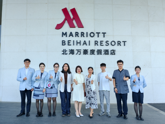 授章仪式结束后,黄珍副书记一行前往北海万豪度假酒店,开展实习就业学生慰问与访企拓岗活动,受到酒店相关领导热情接待。在实习就业座谈会上,学院老师详细了解学生在酒店的工作内容、生活保障及职业发展需求,倾听学生实习感悟与困惑,叮嘱学生珍惜实践机会、提升职业技能;同时与酒店领导深入交流,围绕人才培养标准、实习岗位设置、就业合作方向等议题展开探讨,双方就进一步优化实习方案、建立长期人才输送机制达成初步共识,为学院学子拓宽就业渠道、提升就业质量奠定基础。