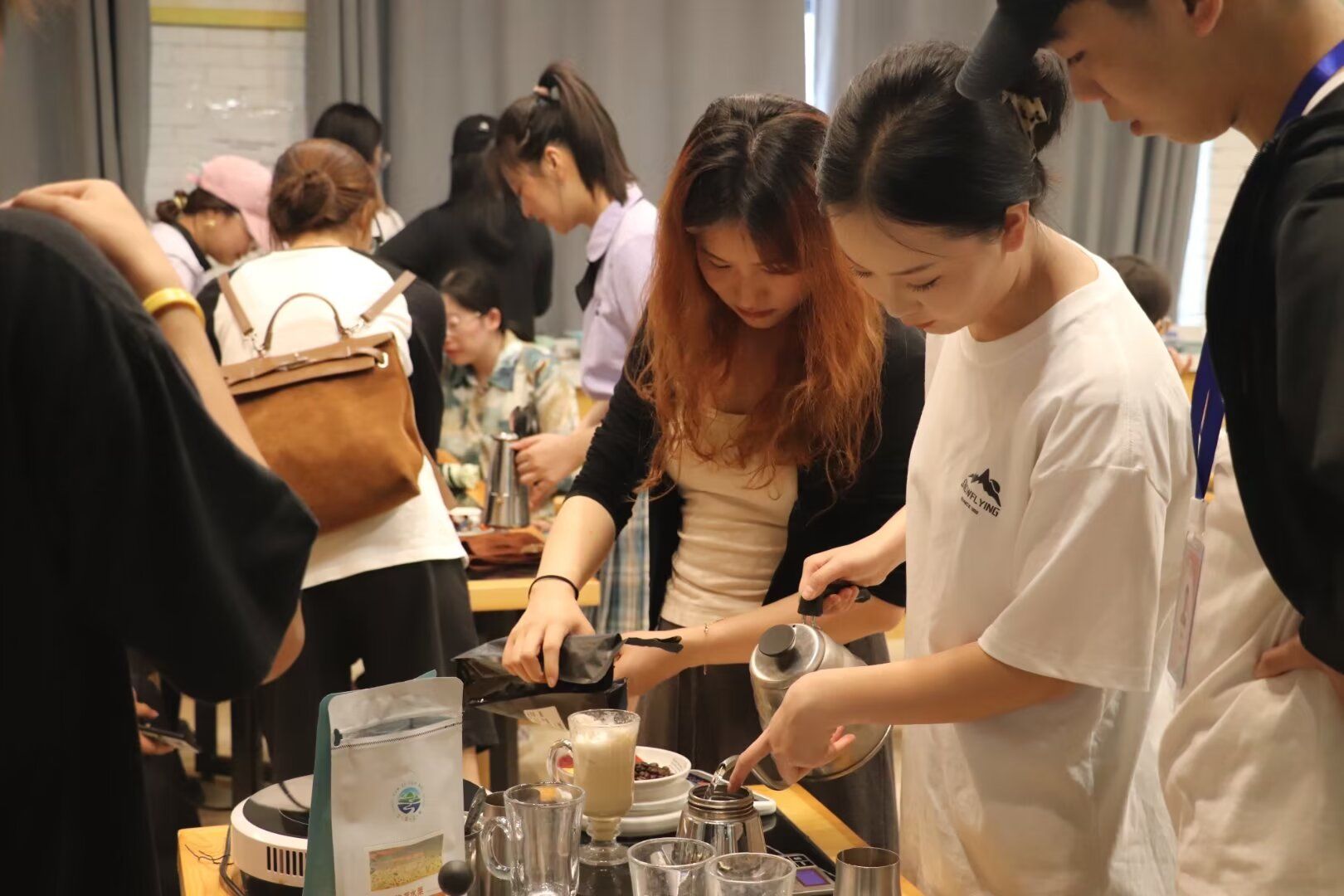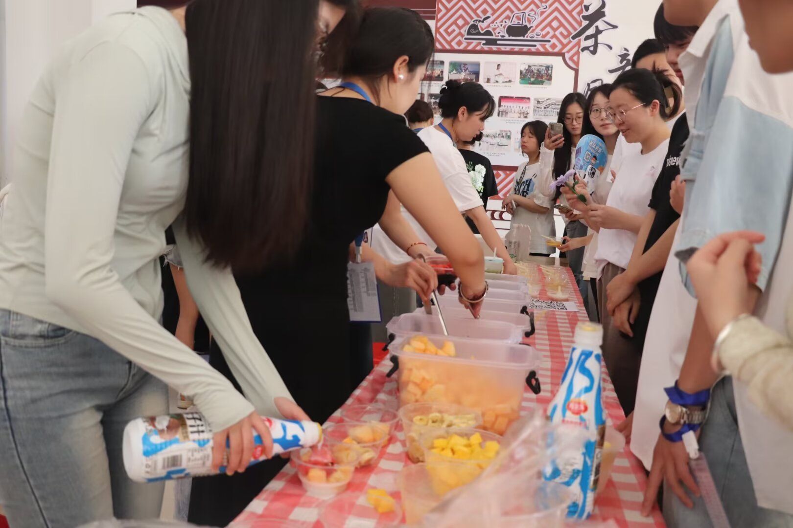 本次开幕式活动丰富多彩,共分为五大展区:第一个展区是航空专业技能展区——客舱体验。开放模拟机舱,邀请老师、同学们身临其境体验客舱礼仪与文化;第二个展区是旅游管理专业技能展区,这里大家能够体验到亲手绘制茶、咖啡、调酒的乐趣。第三个展区是文化艺术体验区,此展区秉承以传承中华文化,提倡民俗文化精神,安排有传统剪纸、书法、扭扭棒盆栽制作、永生花胸针、钥匙扣diy、水拓丝巾、水晶宝宝杯、打卡墙等体验环节,师生在制作体验的过程中,同时增强了对中国传统文化及民俗艺术的认同感和自豪感。第四个展区是文创产品展示区,为了深入推进非物质文化遗产保护,传承中华民族生生不息的优秀传统文化,非遗工坊给大家准备了制作灯笼、同心结、投壶等活动。同时,我院大创中心呈现多种文创产品,供大家参观。第五个展区是美食文化体验区,分别有制作冰糖葫芦、糖画、糖水、水果捞和冰粉、手打柠檬茶、寿司等体验区,大家不仅可以品尝传统美食还可以体验美食的制作过程。