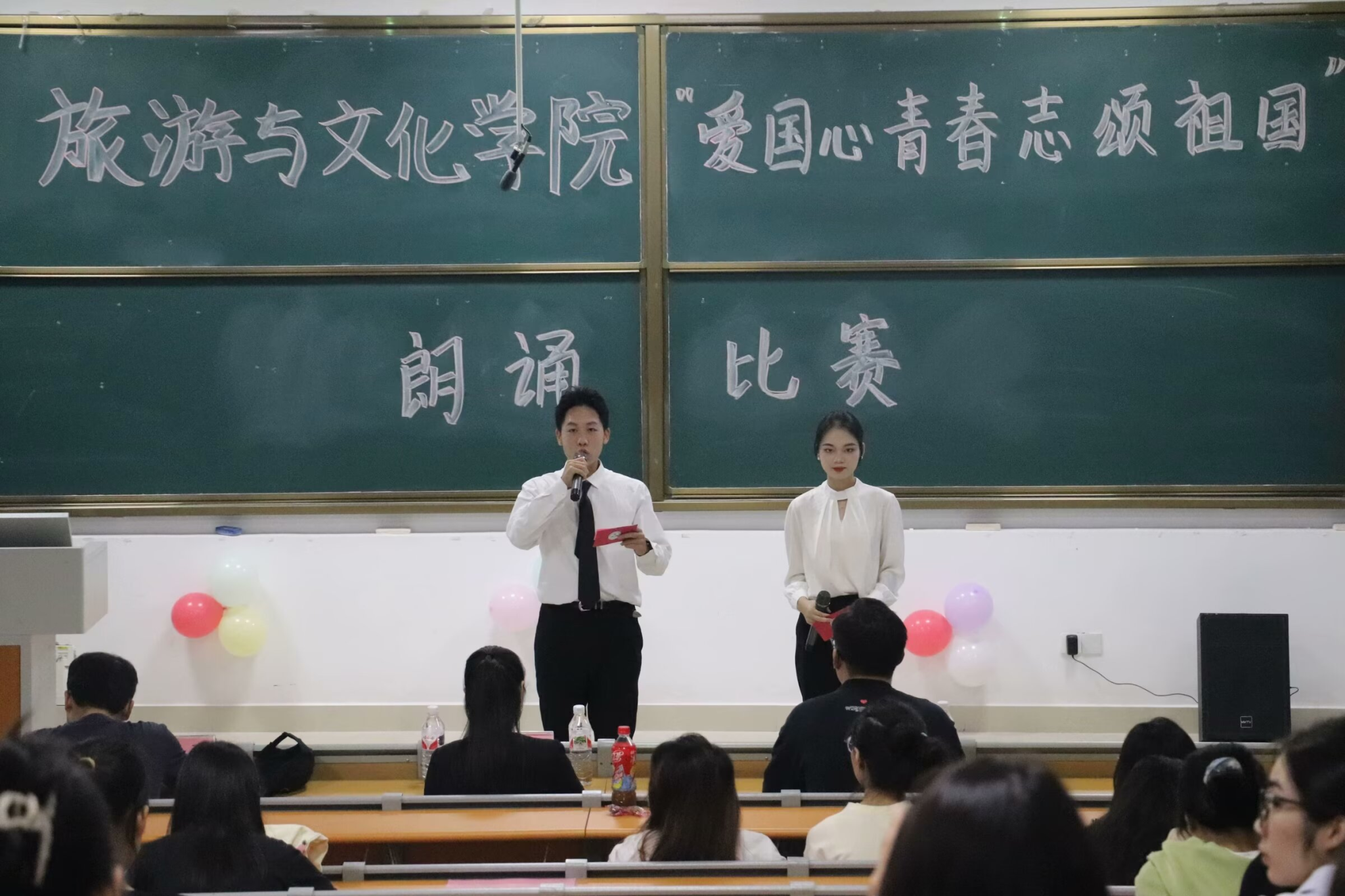 此次活动得到了我院师生的热烈响应,在比赛过程中,同学们的表现都十分出彩。他们用青春的声音朗诵着时代的华章,用真挚的感情诠释着诗歌中的每一个故事,每一段动情的演绎都表达了对祖国、对人民的深厚感情,展现了旅文学子热爱祖国,奋发进取,积极向上的精神面貌。最后,评委老师分别为此次比赛做出了总结,对各位参赛选手的表现给予了鼓励和表扬。朗诵比赛在热烈的掌声中圆满结束。
