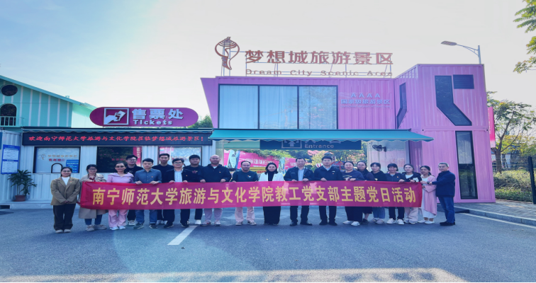 为高质量推进“团队”建设,强化党建与业务深度融合。11月26日下午,学院教工党支部赴武鸣区江宇梦想城开展主题党日活动,党支部书记甘政博士对“团队”周期建设目标、建设任务等进行了详细的说明。同时,党员教师通过实地调研、座谈交流等方式对江宇梦想城在旅游资源开发与后期建设的融合发展上提出了相关意见和建议,并与江宇梦想城达成了初步合作交流的意向。