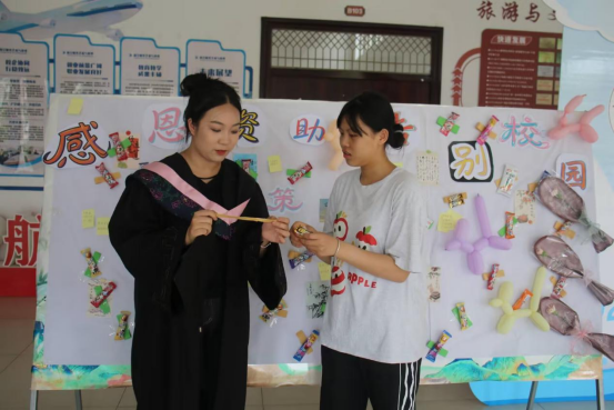 活动现场设置 “资助政策知多少” 问答区与 “感恩资助・心里话” 分享区双面展板。在政策问答环节,学生随机撕下标注序号的 “政策纸条”,回答正确即可领取印有 “资助政策宣传纪念品” 字样的笔记本、书签等礼品。2024 级旅游管理专业学生李同学成功答对 “生源地信用助学贷款续贷截止时间” 问题后表示:“这种‘撕纸条’的互动方式很有趣,让我在游戏中记住了政策要点。”感恩分享区的 “感恩墙” 成为活动亮点,学生用彩色便签书写受助感悟:“国家助学金让我不必为学费担忧,现在我能专注学业,已跟随老师参加3项大创项目,我想把这份温暖传递下去”…… 累计收到 78 条感恩留言,现场抽取 15 名幸运学生赠送定制帆布袋与励志书籍。