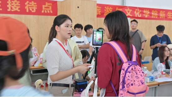 在绿色通道服务区,党员教师与志愿者们为家庭经济困难学生提供“一站式”帮扶,从助学贷款政策解读到生活物资发放,全程贴心陪伴。这种“一对一服务”模式,延续了学院历年迎新的优良传统,让每一位新生都能感受到旅文大家庭的温度。