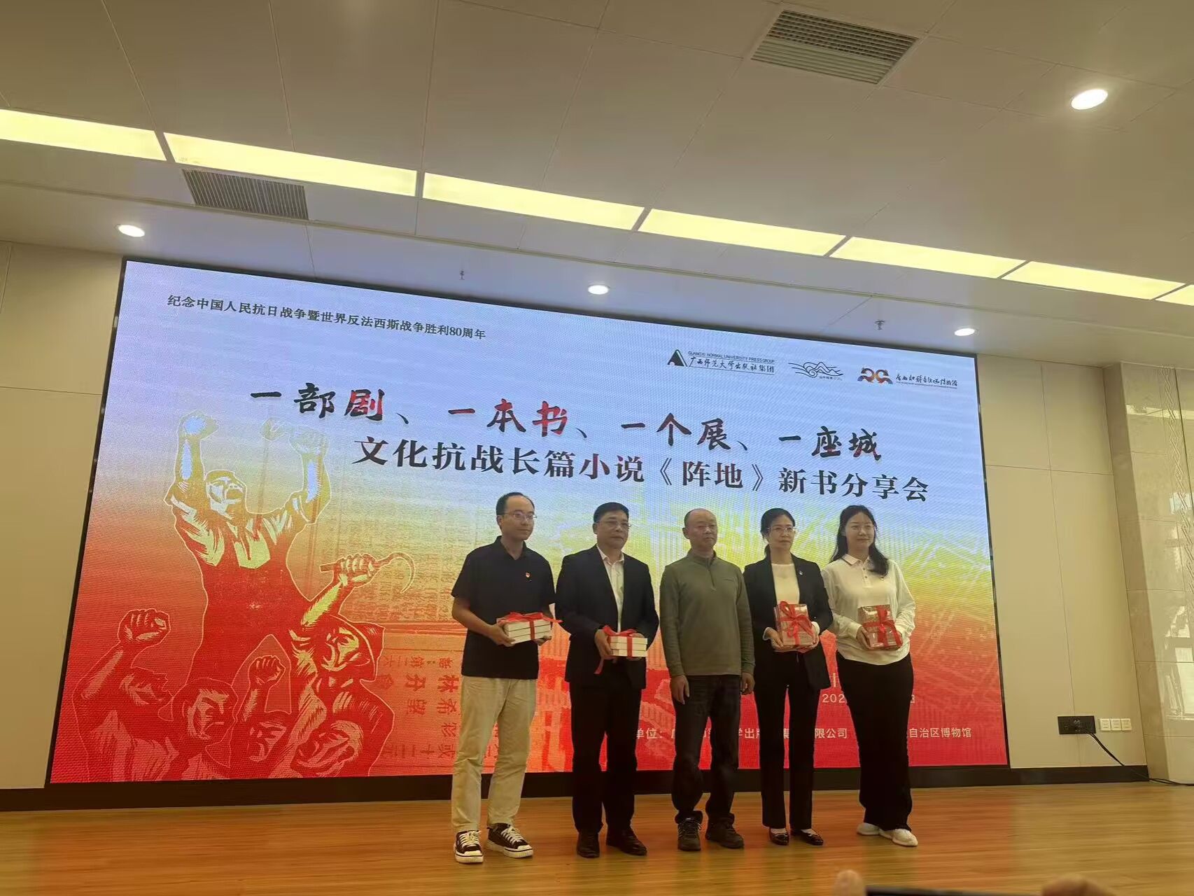 为纪念中国人民抗日战争暨世界反法西斯战争胜利80周年,深刻感悟文化抗战精神伟力,引导师生党员从峥嵘岁月中汲取奋进力量,11月12日上午,bw必威西汉姆联党委组织党员师生代表赴广西壮族自治区博物馆参加文化抗战长篇小说《阵地》新书分享会。本次“文旅铸魂承薪火,品读《阵地》忆峥嵘”主题党日活动,在沉浸式学习中重温文化抗战的热血岁月,让红色基因在文旅融合中代代相传。